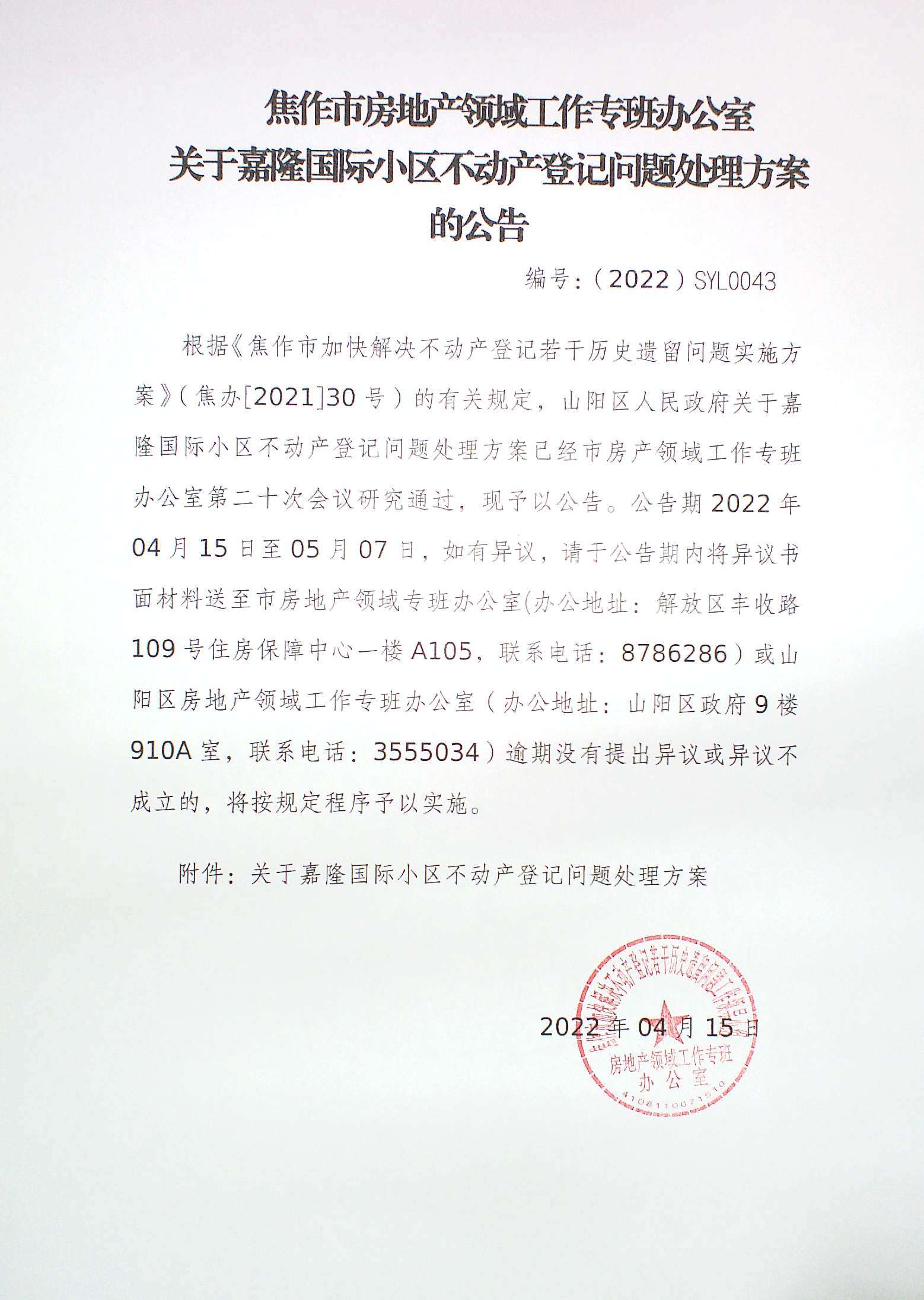 • 關(guān)于嘉隆國際不動(dòng)產(chǎn)登記問題處理方案的公告