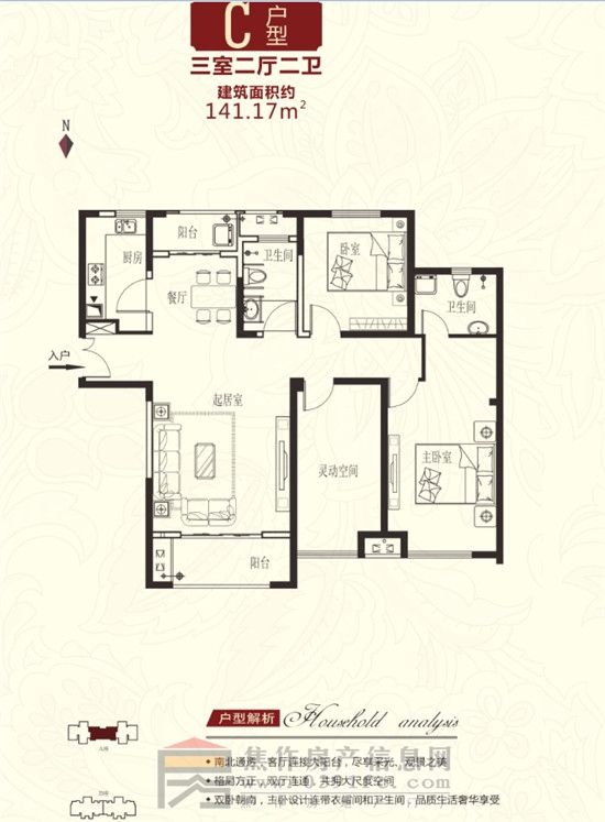 國金·怡桂苑C戶型三室兩廳兩衛(wèi)141.17㎡