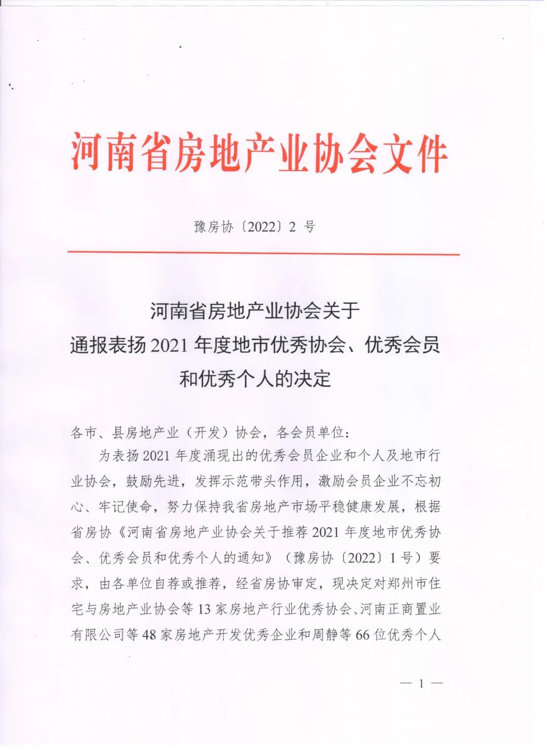 河南省房地產(chǎn)業(yè)協(xié)會(huì)關(guān)于通報(bào)表揚(yáng)2021年度地市優(yōu)秀協(xié)會(huì)、優(yōu)秀會(huì)員和優(yōu)秀個(gè)人的決定